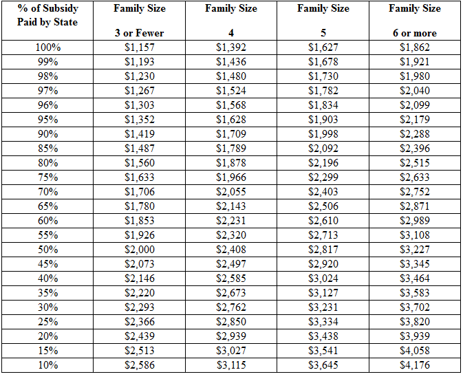 Child Care Subsidy Based On Gross Monthly Income And Family Size