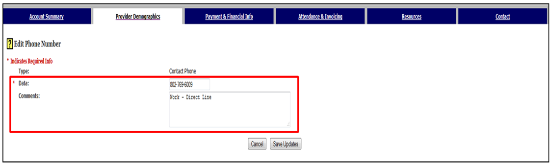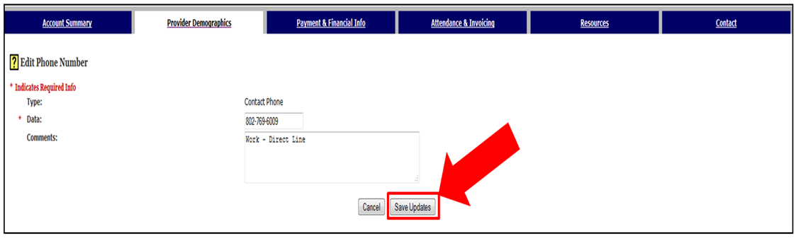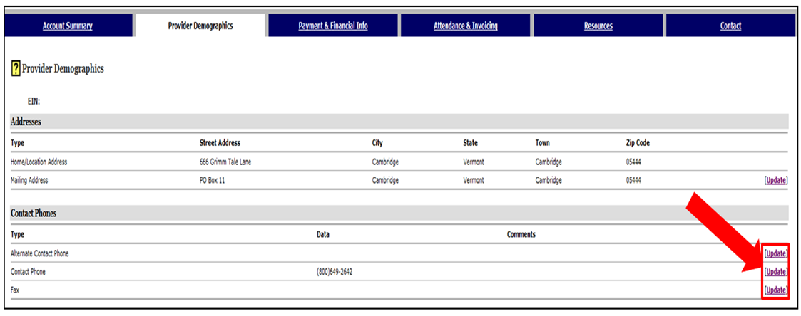 Click the Provider Demographics tab at the top of the page. Picture
